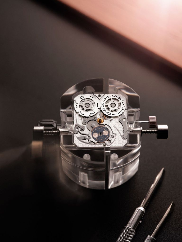 In 1991, 60 years after the Reverso’s creation, Jaeger-LeCoultre presented the Reverso Soixantième. With power reserve and date displays, it was the first Reverso with complications and the first with a sapphire crystal caseback, providing a window onto the mechanical treasure within. Although the Reverso case and its shaped movement had not initially been designed for complications, the Soixantième revealed its full potential, unleashing a sequence of pieces that gave new visual expression to the great watchmaking complications.