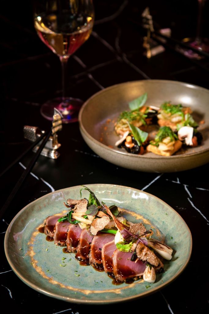 Typical mains are complemented by more East-West creations blending rich Chinese flavours and subtle French products, such as half-cooked tuna with black truffle and sesame, abalone and fried tofu accompanied by seaweed and black mushroom, or flambé beef short ribs, all dishes that guarantee an unparalleled tasting experience.