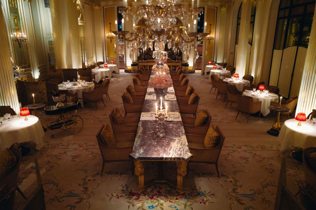 Pour donner corps à la dimension historique de son projet, le Chef a puisé son inspiration dans de nombreux ouvrages d’époque –qui furent aussi, jadis, ses premiers livres de cuisine : « Le livre de cuisine » de Jules Gouffé, « L’art de la cuisine française » d’Antonin Carême », le « Guide Culinaire » d’Auguste Escoffier ou encore les « Menus de Légende » du collectionneur Jean Maurice Sacré, avec lequel il s’est longuement entretenu. Jean Imbert est épaulé par Denis Courtiade et son équipe de salle, une brigade de cuisine dirigée par Jocelyn Herland et Mathieu Emeraud et la pâtisserie est orchestrée par Angelo Musa et Elisabeth Hot.