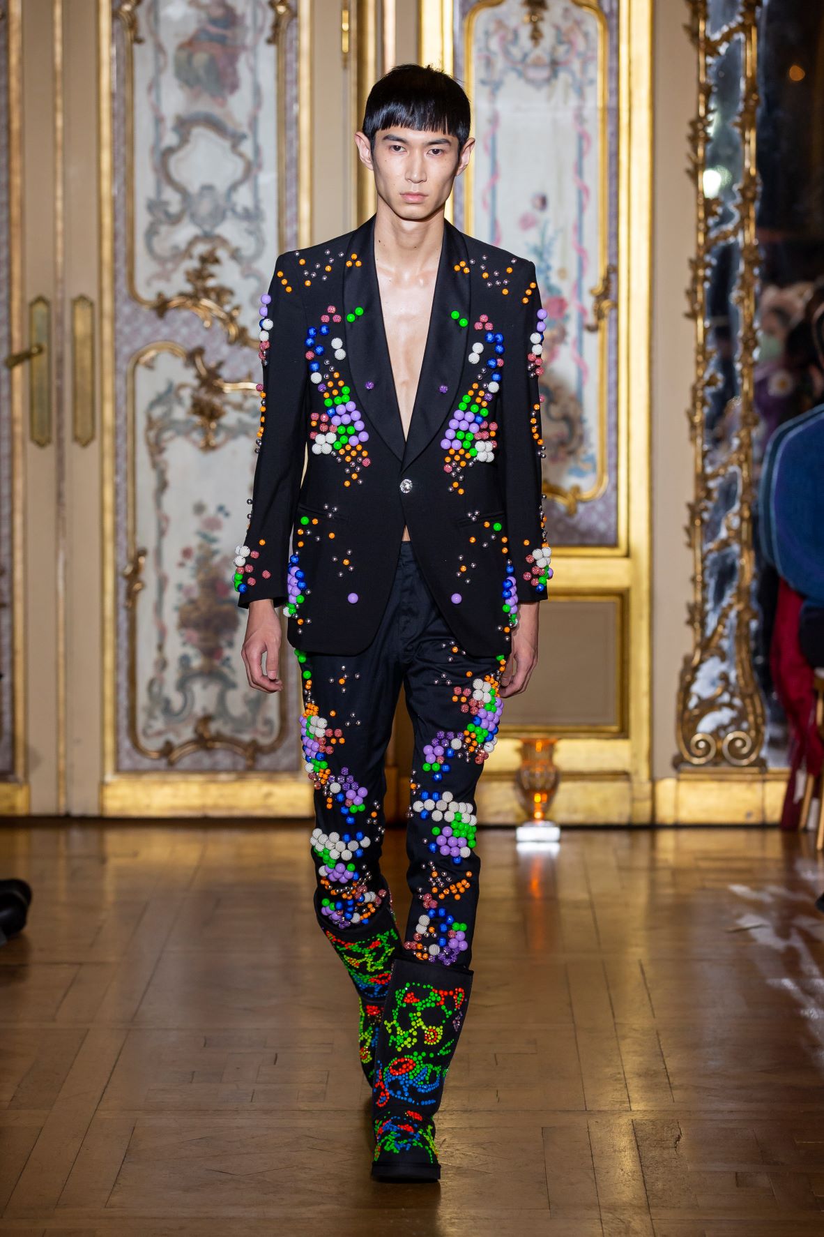 Heralded for his sustainable approach to fashion, 2018 marked the debut of Central Saint Martins graduate Kevin Germanier’s eponymous label: Germanier. The focus is on luxury upcycled fabrics with arresting details, such as discarded beads that the designer found during a work placement in Hong Kong, a prize for winning the Redress Award in 2015. Germanier eschews the homespun connotations for which eco-friendly fashion is known and instead draws inspiration from a futuristic vision of utopia.
