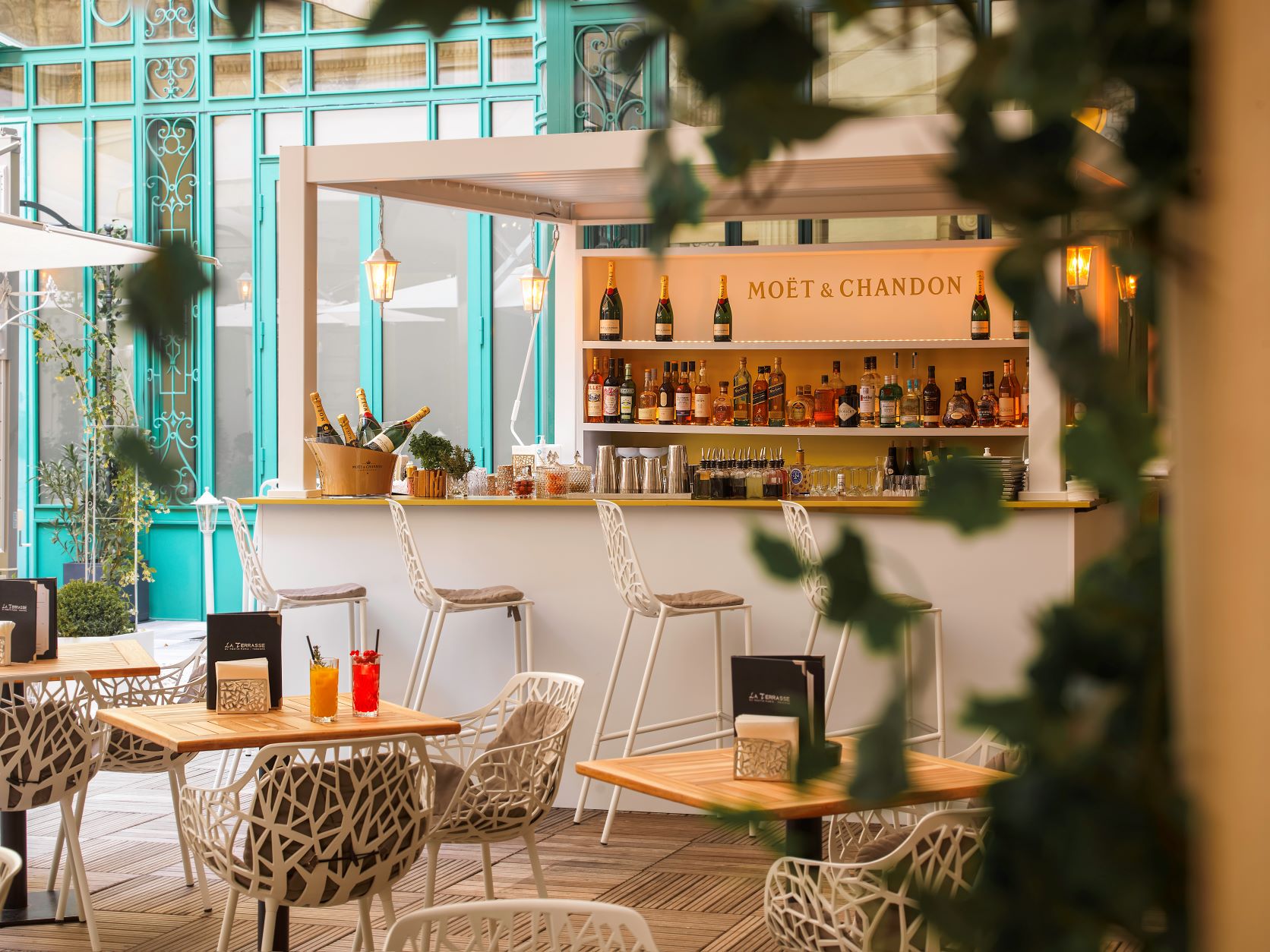 Le Westin Paris–Vendôme s’est associé avec Moët & Chandon pour sa terrasse d’été cette année. Le Jardin des Tuileries et son histoire sont le thème qui a inspiré ce coin de verdeur au cœur de la capitale. Vases Médicis, réverbères blancs, arches ornées de fleurs et de buis rappellent le jardin voisin et permettent de profiter d’un coin de quiétude inattendue en plein cœur de Paris.