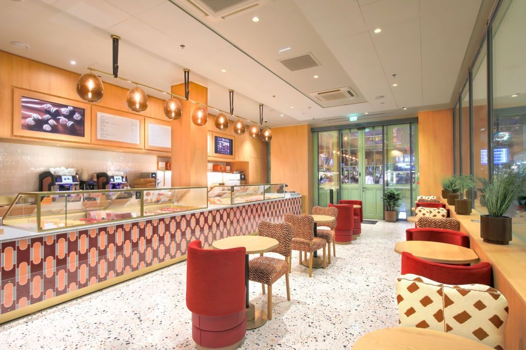 Empreinte d’histoire, elle fait échos aux créations du pâtissier, qui puise son inspiration au cœur de ses voyages et de ses rencontres. Pour l’aménagement du lieu, l’architecte du goût a pu s’appuyer à la fois sur la créativité de l’architecte d’intérieur Laura Gonzales et l’expertise des équipes SSP, habituées à retranscrire des concepts de marques forts, dans des lieux atypiques tels que les gares et les aéroports.