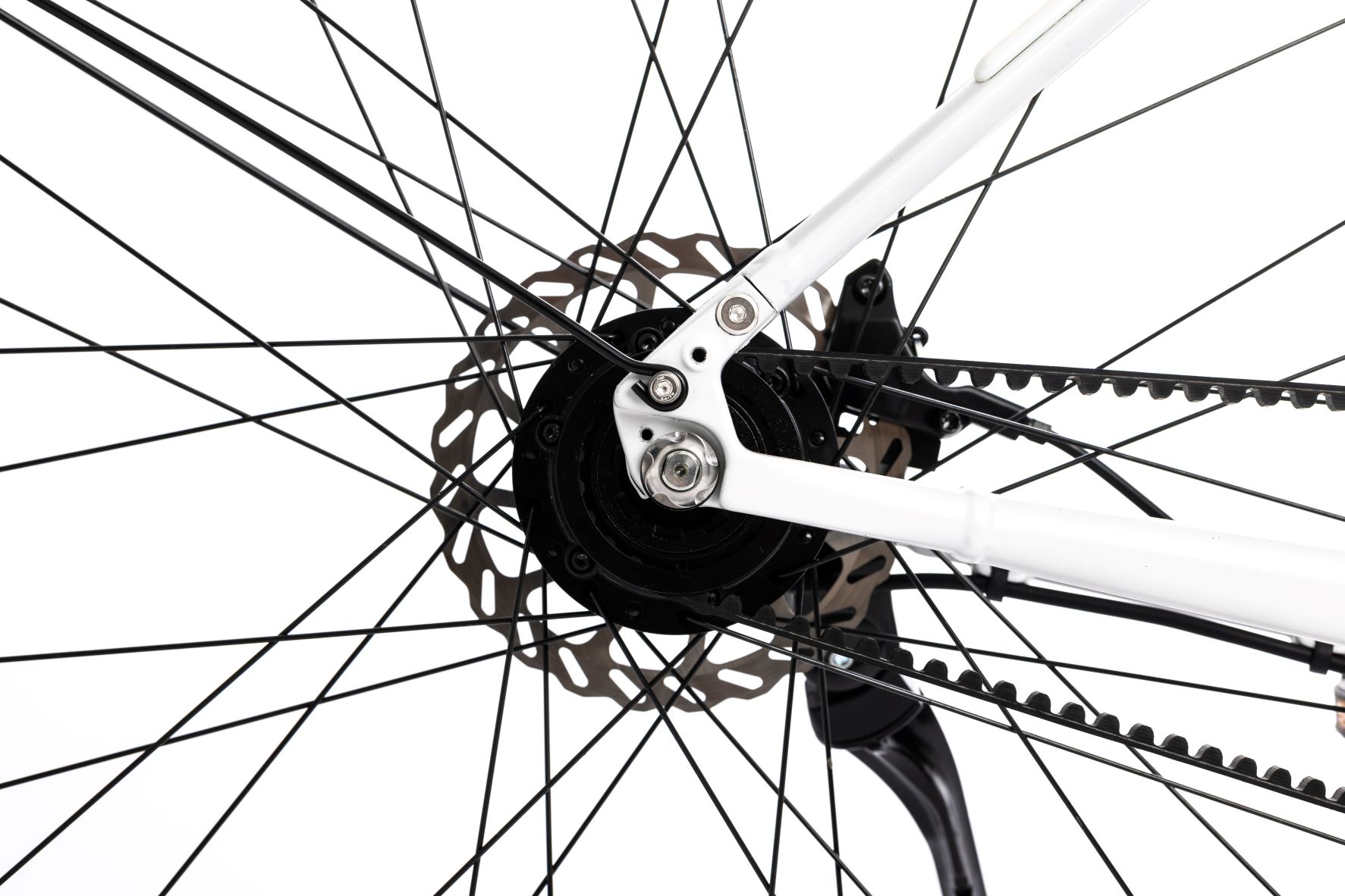 Que le vélo soit chargé ou qu’il roule sous la pluie, les freins à disques hydrauliques sont gages de fiabilité et de sécurité. Le vélo possède également une transmission par courroie carbone, des pneus anti-crevaisons et un port USB pour recharger son téléphone.