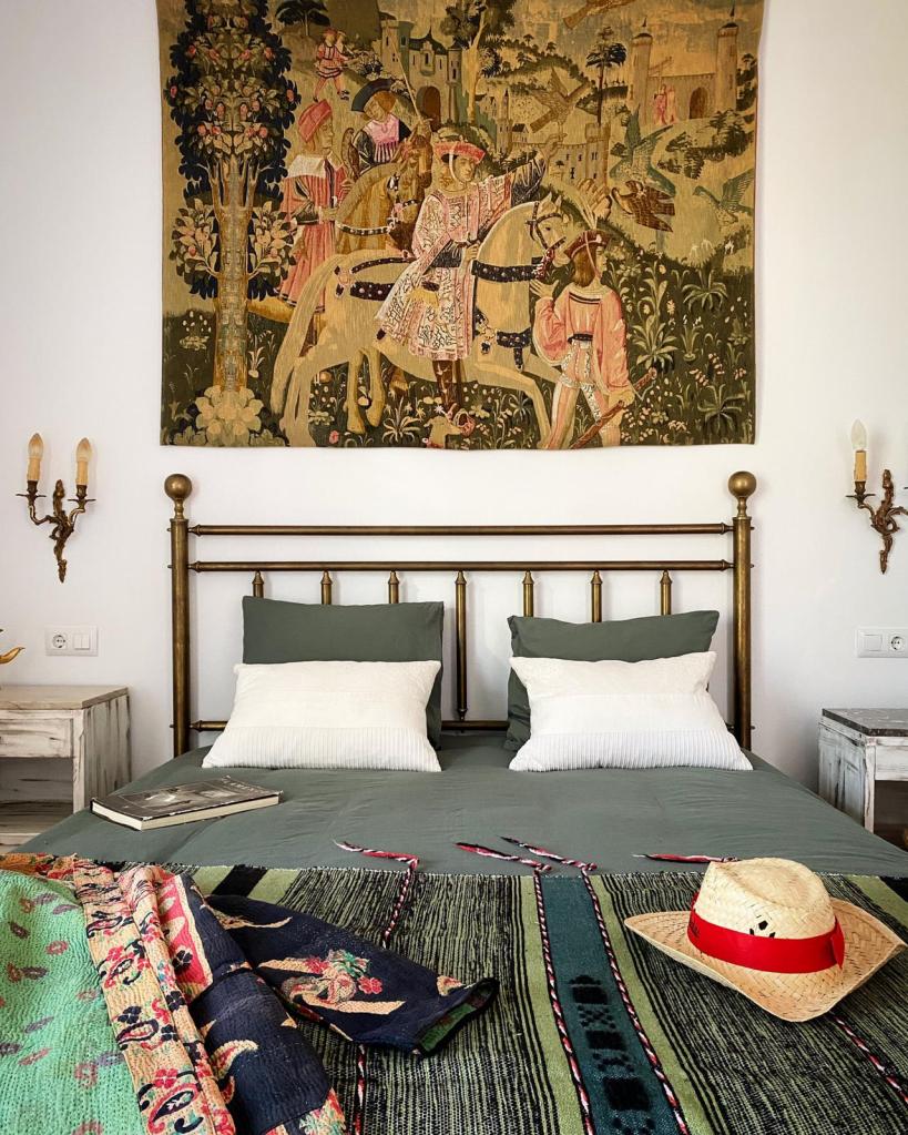 La passion du cheval des deux propriétaires se retrouve dans la décoration de toutes les pièces : gravures, harnachements anciens mosqueros colorés, chapeaux sévillans au bord plat. Chaque chambre a un caractère unique : on s‘endort dans un lit Henri IV, on lit à la lumière dorée des appliques en fer forgé, on pose ses pieds sur le moelleux d’un tapis ancien, on découvre une lampe unique de Charles Zana. Le bois, la pierre claire et la céramique présents partout font échos à la lumière éclatante du soleil du Sud qui inonde les chambres doublement exposées.