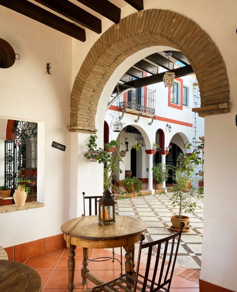 La restauration totale de l’Hacienda a été faite dans le pur respect de l’architecture andalouse : depuis le patio entouré de colonnades en passant par les sols en terre cuite, les azulejos ou les balcons en fer forgé. Sa majestueuse façade blanchie à la chaux aux ouvertures rehaussées de couleur rojo maestranza est ceinte de deux tours. Inscrite au Patrimoine Culturel Andalou, elle est l’exemple parfait de l’architecture historique typique des haciendas sévillanes codifiée au début du XXe siècle par l’architecte régionaliste sévillan, Aníbal González.