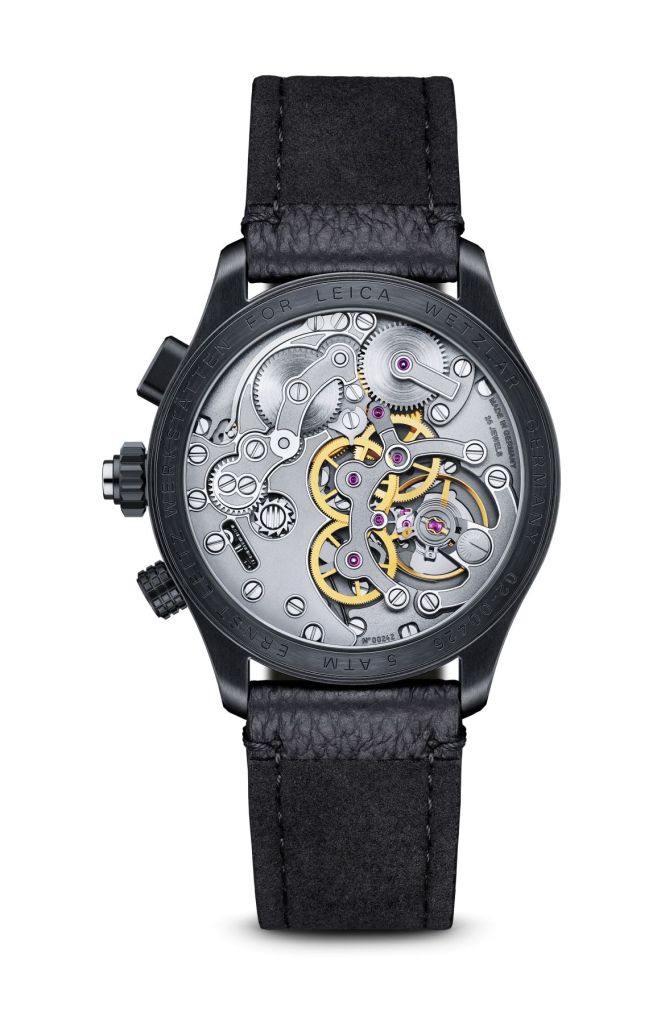 La conception caractéristique de la montre Leica ZM Edition Monochrom ôte toute finition colorée ou argentée, pour ne garder que le point rouge et aboutir ainsi à une esthétique résolument minimaliste. Sous le verre saphir antireflet et fortement bombé se trouvent les index et les aiguilles rhodiés noirs, diamantés et sablés. Le cadran, y compris ses cornes, est fraisé dans un bloc massif d’aluminium haute résistance afin de renforcer sa résistance aux chocs. En outre, la composition du bracelet de la montre « Monochrom Edition » est la même que celle de l’appareil photo M11 Monochrom. Le bracelet est fabriqué en cuir de veau noir épais et à grain prononcé. Sa construction est à bords coupés et il est cousu à la main afin de convenir au style à la fois robuste et raffiné de la Leica ZM Edition Monochrom.