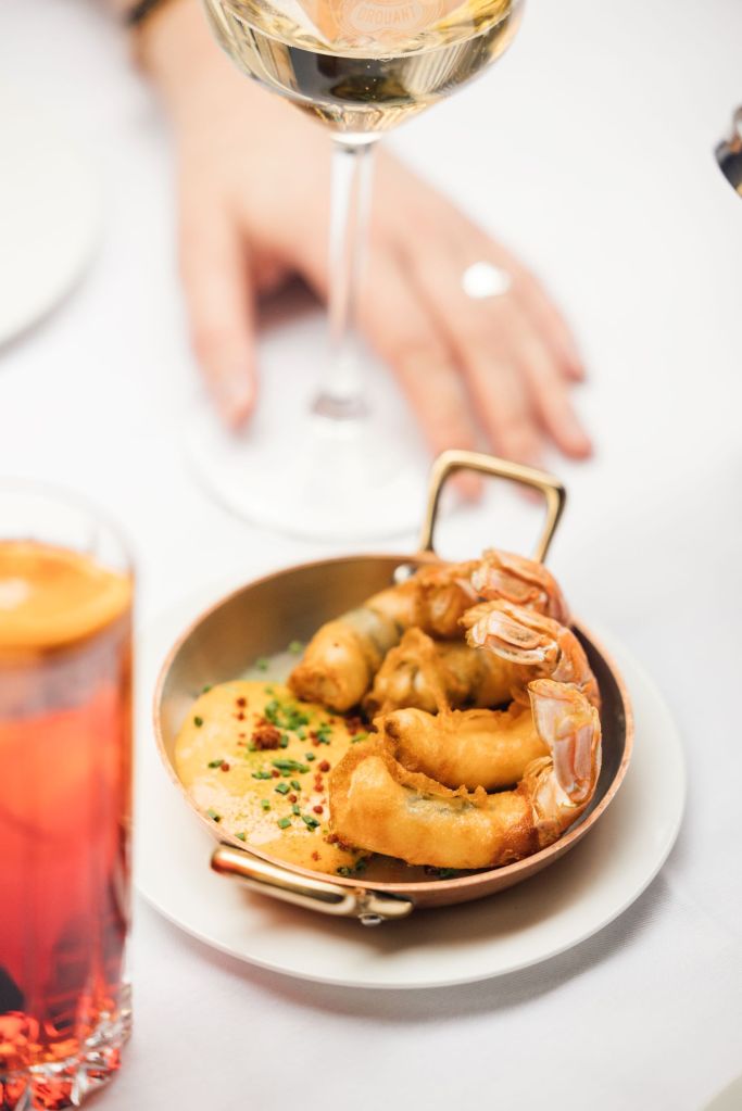 La tartelette aux petit-pois au vert éclatant est un souffle de légèreté. Les asperges sont servies dans leur plus simple apparat pour laisser la part belle au produit, tout juste légèrement flambées au chalumeau. Tandis que les langoustines à cru et zestes d’agrumes évoquent la fraîcheur rêvée en une chaude journée ensoleillée.