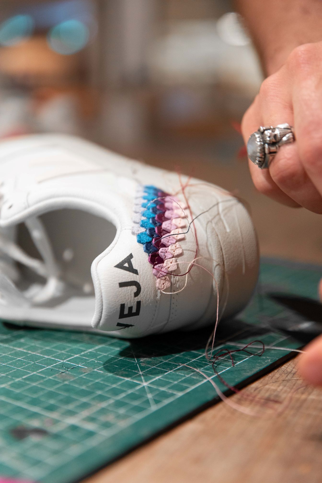 VEJA asked one of its cobblers, Walter, to create a style using VEJA’s leather waste for Dover Street Market Ginza in Japan. With the VEJA design team, he crafted 20 pairs, which will exclusively be sold at Dover Street Market Ginza on Saturday 28th October.