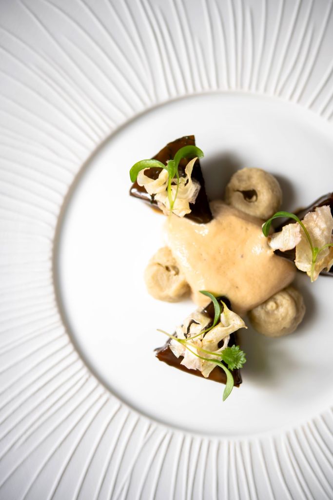 Virtuose de la technique, Jérôme Banctel peut désormais s’en affranchir et s’autorise à pousser les curseurs, à aller plus loin : goûts concentrés, jeux d’acidité maîtrisés, profondeur des saveurs, subtilité des compositions… Le chef laisse ainsi s’exprimer son inspiration voyageuse, entre sa Bretagne natale et le Japon, qui l’a profondément marqué, en passant par la Turquie, où il a découvert la cuisson à la chaux : une technique qu’il s’est désormais appropriée. Ses menus « Escales », « Virée » et « Périples » reflètent son identité culinaire avec des assiettes à la précision millimétrée, aussi percutantes qu’intelligentes.