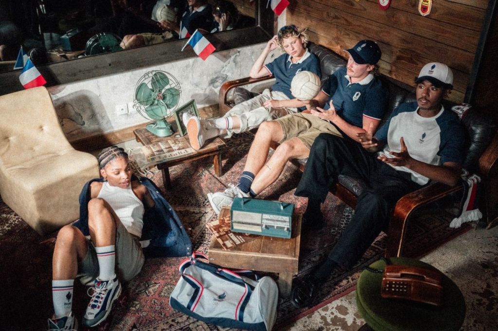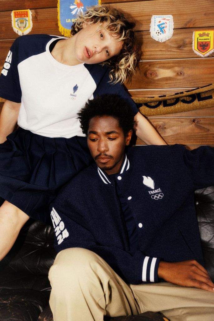 La collection fait référence aux tenues portées par les sportifs. Sur le terrain ou en dehors, on reconnaît l’élégance des pièces portées dans les années 80. Intemporelle, un brin vintage, la collection Equipe de France Olympique met en valeur l’esprit du sport avec des pièces indémodables : tee-shirt mixte, polo homme, varsity unisexe, chaussettes, un survêtement, casquette…