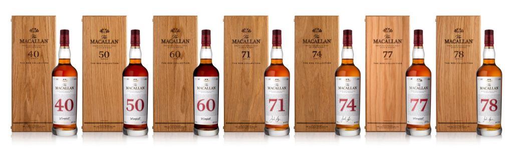 Inspirée par l’importance de la couleur rouge dans l’histoire de la marque, The Macallan, Red Collection présente une sélection soigneusement élaborée de whiskies single malt, dont le vieillissement a été prolongé pour atteindre la maturation idéale de chaque expression, allant ainsi de 40 à 78 ans.