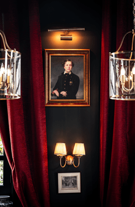 Chez Micheline les murs sont tapissés de portraits anciens, chinés à travers la France. Des dessins de polo et des portraits d’animaux, encadrés de façon un peu kitsch, rappellent une époque où l’on aimait afficher son style avec audace. Partout, des trophées, harnais, et selles racontent l’histoire de Claude Solarz (associé historique des Bistrots Pas Parisiens et ancien grand joueur de polo), dont les souvenirs habitent les murs. Banquettes en cuir marron patinées, objets chargés d’histoire.