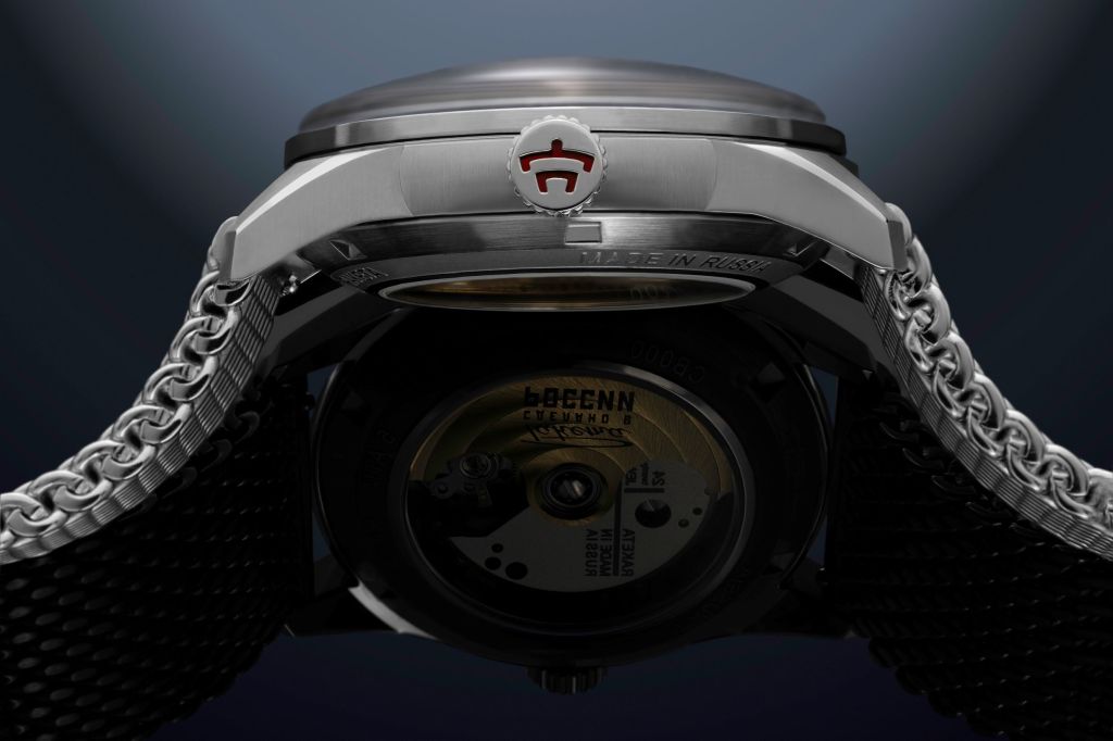 The back of the watch reveals the beautifully decorated automatic movement which is entirely produced by the Raketa Watch Factory in Saint-Petersburg.