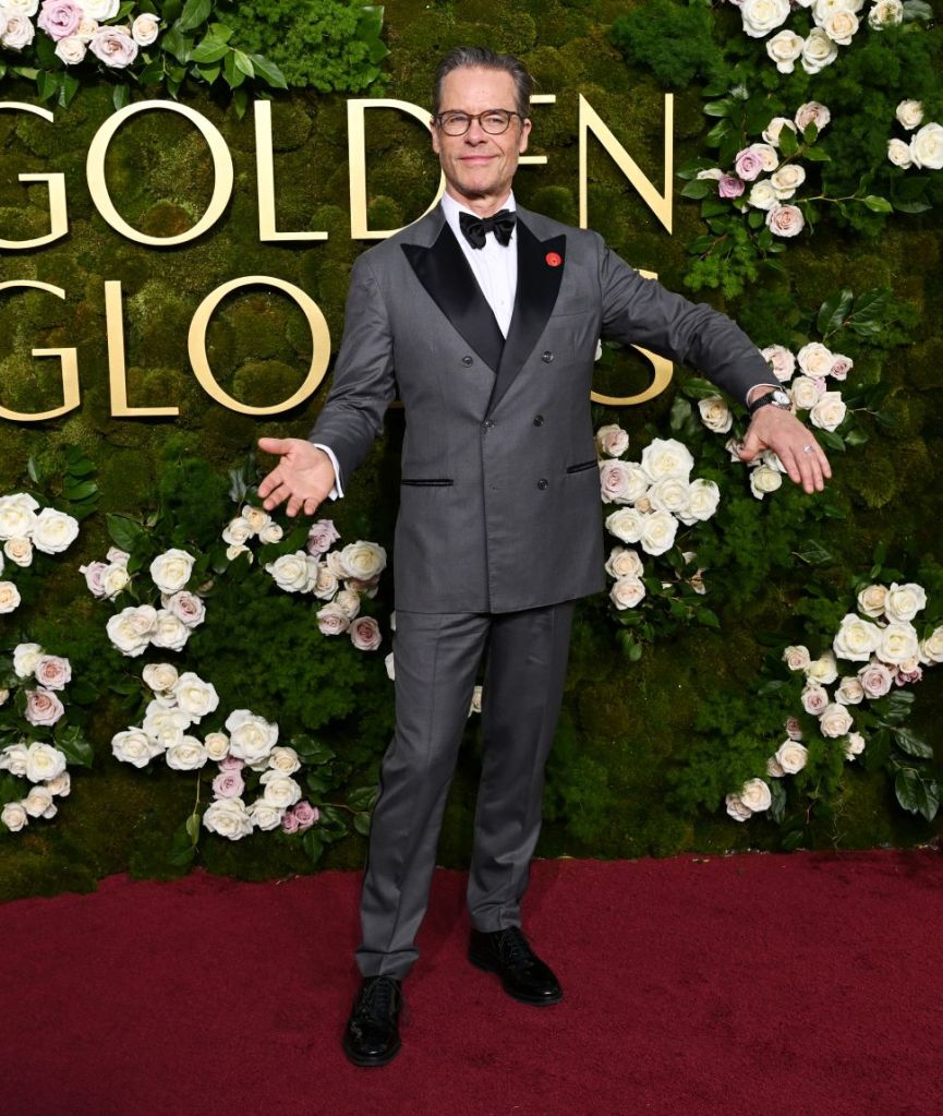 Guy Pearce, nominated for the Best Performance by an Actor in a Supporting Role in Any Motion Picture for The Brutalist, Guy Pearce wore a Speedmaster Moonwatch in stainless steel with a lacquered white dial and a micro[1]perforated black leather strap.