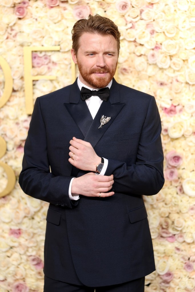 Kieran Culkin, winner of the Best Performance by an Actor in a Supporting Role in Any Motion Picture for A Real Pain. He wore a 38 mm Seamaster Aqua Terra Shades in stainless steel with a lacquered terracotta dial.
