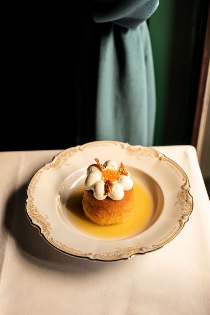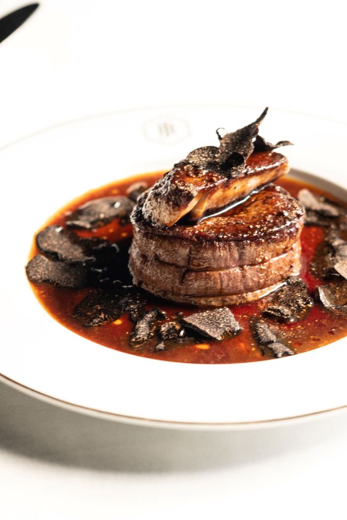 De l’entrée au dessert, Jan revisite les plats du répertoire français, chers à lui. On y retrouve la Sole Meunière à la Grenobloise, le céleri rémoulade, « les Daddy’s Big Prawns » flambées au pastis, le tournedos Rossini ainsi l’île flottante crémeuse.