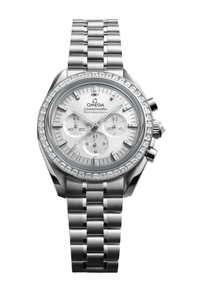 Nommé pour l’Oscar du Meilleur Acteur dans un Rôle Principal pour sa performance dans Sing Sing, l’ami de la marque OMEGA, Colman Domingo, portait une Speedmaster Moonwatchen or 18K Canopus™ avec des diamants taille baguette.