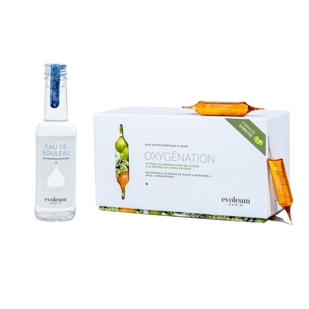 D’autre part, l’Offre de Saison “Pure Détox” qui est composée d’une cure d’Eau de Bouleau (12 jours) associée à la cure Cosmétique-à-Boire Oxygénation (21 jours), pour drainer, détoxifier et reminéraliser en profondeur le corps et la peau. Les actifs de ces deux produits agissent en synergie pour drainer le corps et purifier la peau. L’Eau de Bouleau va stimuler avec les jeunes pousses de genévrier du soin Oxygénation, les reins et le foie pour nettoyer l’organisme. Les polyphénols de pépins de raisin du soin Oxygénation complétés par le manganèse amené par la sève de bouleau vont protéger la peau des agressions extérieures et du froid.
