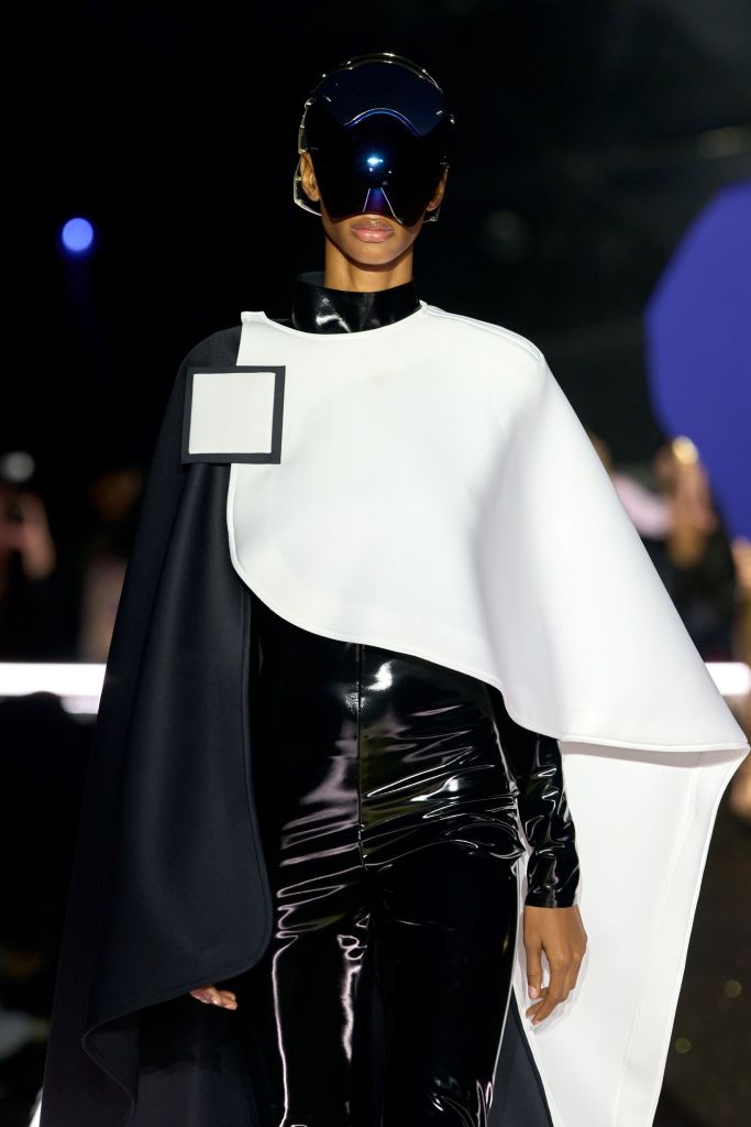 La Géode, with its imposing mirrored dome, provided a timeless setting for this extraordinary runway show. Through an immersive spectacle blending fashion with cosmic projections, the House of Pierre Cardin offered its 700 guests a unique experience-suspended between two worlds destined to complement each other: the Earthly and the Lunar. A collection designed for the inhabitants of the future, whether on Earth or in space.