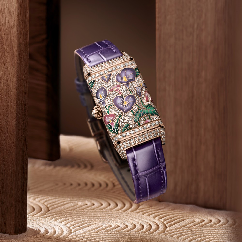 In 2021, Jaeger-LeCoultre introduced the Reverso One ‘Precious Flowers’ series with models that united the codes of fine watchmaking, artistic crafts, and high jewelry to bring vivid colors along with an unparalleled level of sophistication to the Reverso One case. In 2025, two new models of exceptional beauty are being introduced: the Reverso One ‘Precious Flowers’–Green Arums, and the Reverso One ‘Precious Flowers’–Purple Arums. Both models are presented in pink gold (18k –750/1000) cases and each will be produced in a limited edition of 10 pieces.
