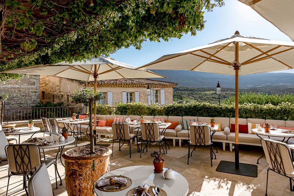 Situé à 40 km d’Avignon, l’hôtel village composé de 9 maisons reliées entre elles par les ruelles du village fusionne littéralement avec le décor et conte l’histoire d’un coin de paradis. Un labyrinthe de bâtisses des XVIIème et XVIIIème siècles, tapissées de vigne vierge, qui dévoilent une terrasse panoramique à couper le souffle, une piscine et un bar.