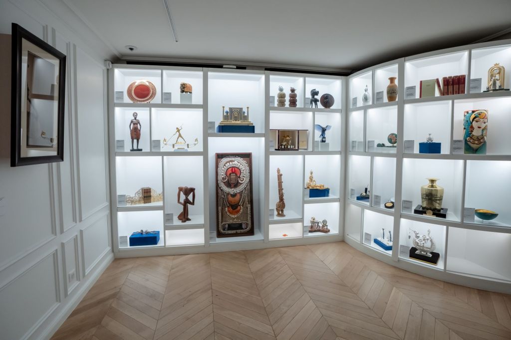 Le contenu patrimonial en a vite été décidé : non pas des fac-similés, mais des objets d’art authentique, venus de l’Élysée, sous la houlette du Mobilier National : le bureau du général de Gaulle, des mobiliers Paulin, des pièces d’orfèvrerie, d’horlogerie ou de vaisselle de Sèvres. À travers ces pièces d’exceptions se dévoile le quotidien de l’Élysée, protocole diplomatique, symboles et honneurs républicains, réceptions, dîners officiels.