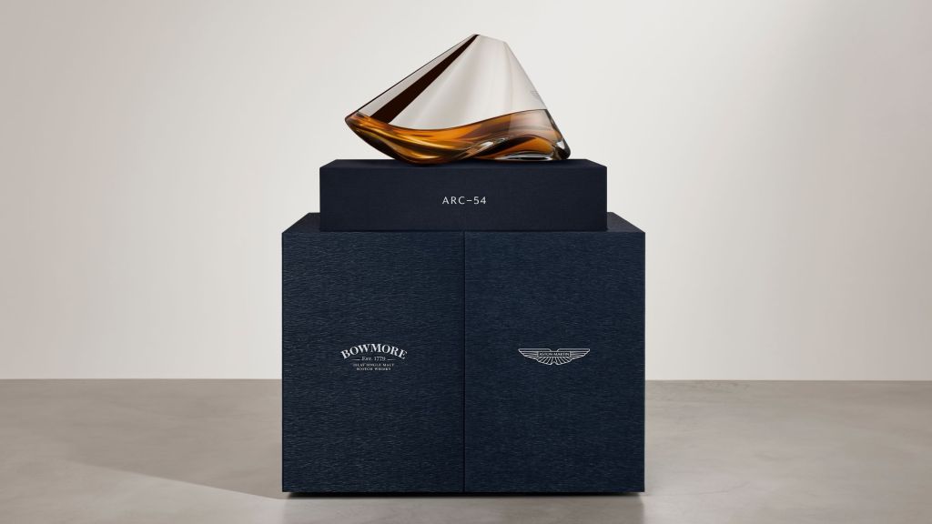 Chaque carafe soufflée à la main s’inspire de l’extérieur aérodynamique de l’Hypercar Aston Martin Valkyrie, inspirée de la F1, notamment les tunnels venturi sur toute la longueur qui contribuent à générer environ 1 100 kg d’appui, ainsi que les formes fluides naturelles du terroir d’Islay. Émanant de la direction et des principes de design d’Aston Martin, le Bowmore ARC-54 est sculpté avec précision, créant un sens saisissant de fluidité dans ses lignes et son style. La forme est définie par cette aérodynamique fluide et illustre la philosophie partagée à travers la sculpture en verre inspirée du diffuseur pour mettre en valeur les reflets fluides du whisky qu’elle contient.