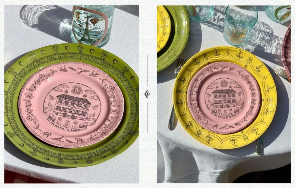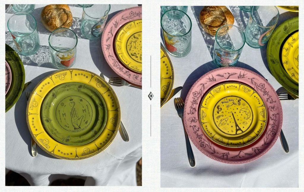 Inspirées des assiettes du XIXe siècle, véritables objets de curiosité ornés de scènes et de mots doux, cette collection rend hommage au patrimoine français tout en lui insufflant une touche moderne et sensible. Chaque pièce raconte une histoire, celle d’un artisanat précieux et d’un regard émerveillé sur le quotidien.
