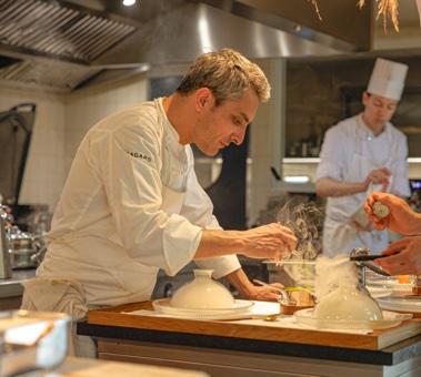 Sa démarche repose sur une conviction forte : la grande cuisine peut et doit être locale. Pour cela, il tisse des liens étroits avec un réseau de producteurs, maraîchers, cueilleurs, éleveurs et artisans avec lesquels il dialogue en permanence. Cette proximité nourrit une créativité ancrée dans le réel, dans le rythme des saisons et dans les aléas du vivant.