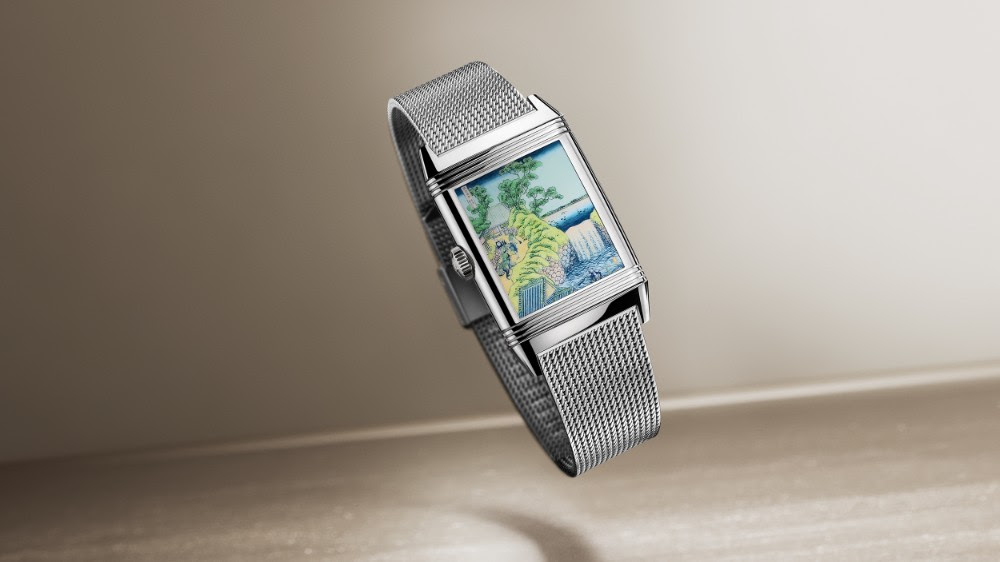 Jaeger-LeCoultre revient à la série des « Cascades » avec quatre nouvelles Reverso Tribute Enamel. Chacune de ces éditions limitées à 10 exemplaires a été décorée à la main par les artisans de l’atelier des Métiers Rares™ : le cadran guilloché et émaillé au recto s’accompagne d’un verso orné d’une peinture miniature représentant l’une des œuvres de Hokusai.